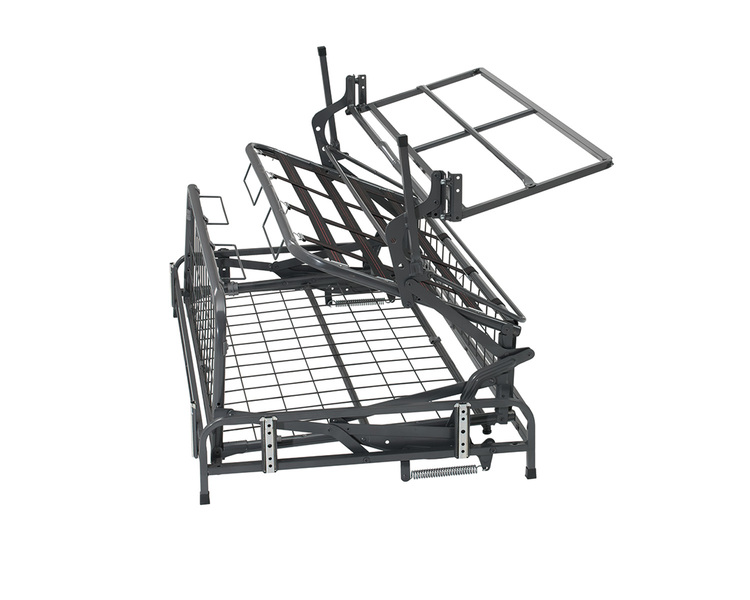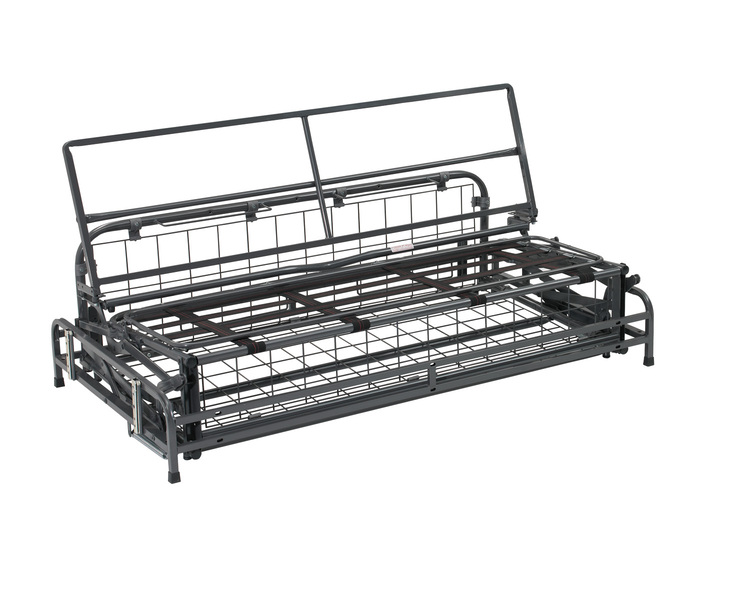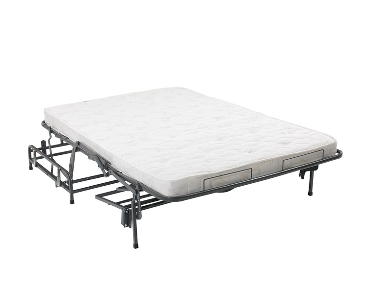 Mecanismo desdobrável para sofá cama, com estrutura de fácil encaixe dos braços do sofá e compatível com vários modelos de costas.