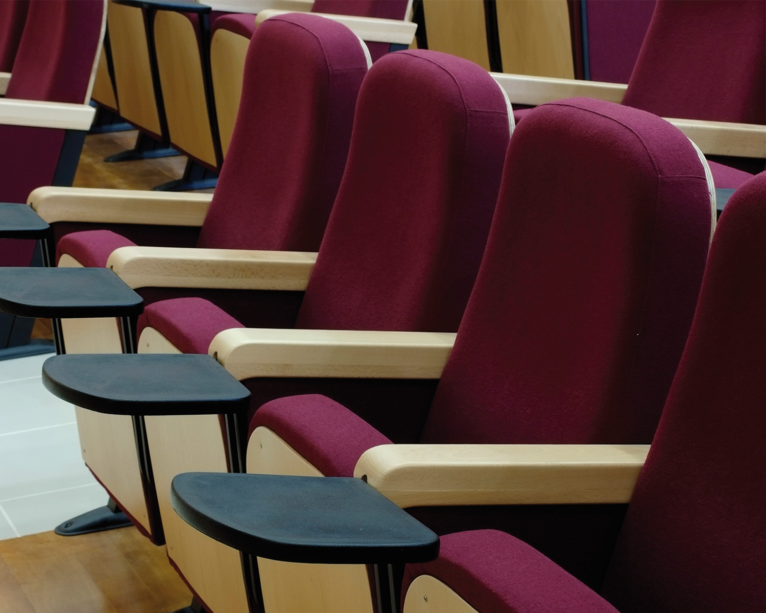 O desenho elegante da poltrona Medusa, com apoio para os braços e assento e costas envolventes, proporciona o maior conforto em qualquer tipo de auditório. O assento rebatível deixa desimpedido o espaço de circulação entre filas.